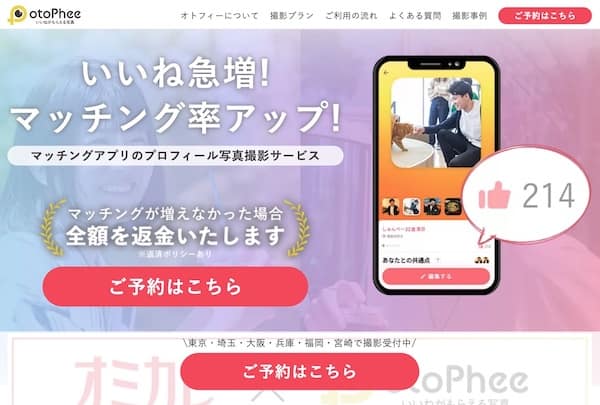 マッチングアプリをしっかり利用、アプリでいいねがもらいやすい写真を理解したカメラマンが撮影するからいいねがもらえる写真を撮ってもらえる